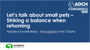 Despite the conference being focused on cats and dogs, for the second year in a row we were offered a lunchtime session to focus on our smaller pets like rabbits and hamsters. I couldn’t believe it when I asked one of the organisers how many people had booked on only to be told that it was sold out! They genuinely had to put someone on the door to tick off attendees as they arrived and turn away those without a booking. It was an amazing way to demonstrate the demand for more opportunities to concentrate on small pets. The session focused on discussing the challenges that rescue organisations face when rehoming smaller pets, particularly the need to ensure that appropriate accommodation is provided in the new home, whilst still appealing to the general public for rehoming. The session discussions were thought provoking, and you could tell how difficult it was for attendees to decide on their own position on the subject. Whilst the majority had an initial gut response that we should never compromise on the accommodation standards we request; it was interesting to see the conflict develop for people when they then thought about the bigger picture and how this might impact so many animals on waiting lists. Look out for the opportunity to join this discussion at Woodgreen, as we will be repeating this session internally for staff and volunteers in the coming months. Sessions like this always work best when a range of different people attend, bringing with them different perspectives, so whatever your role at Woodgreen you’re very welcome to join us in what is sure to be a thought-provoking session.